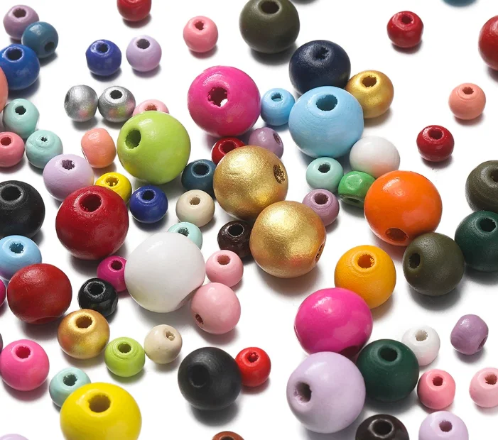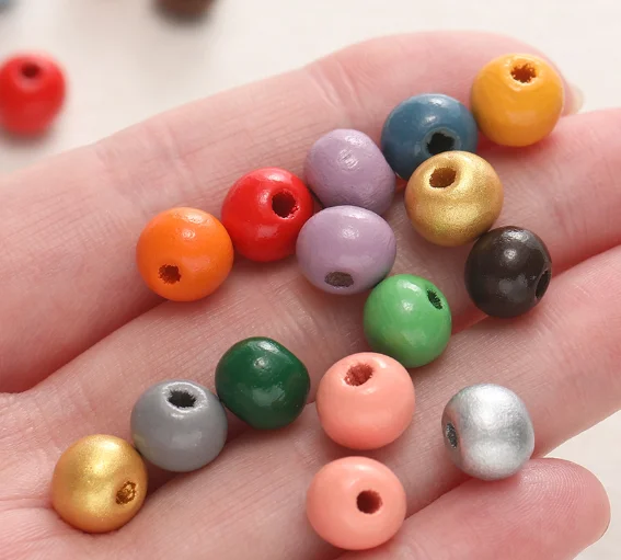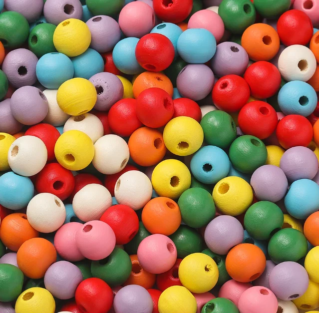 Wooden Beads 200pcs/Bag Multicolor Painted Barrel Wood Beads for DIY Crafts and Party Festival Decoration